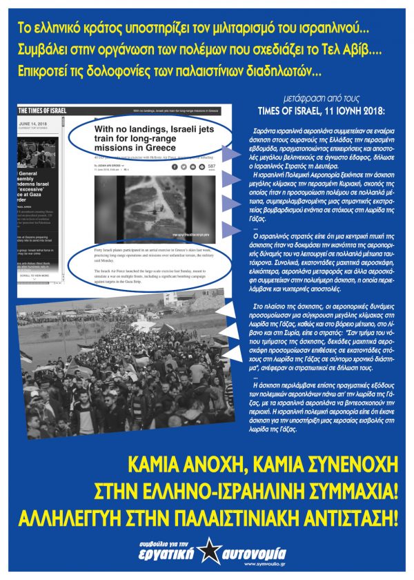 ενάντια στην ελληνο-ισραηλινή συμμαχία – Ιούνιος 2018